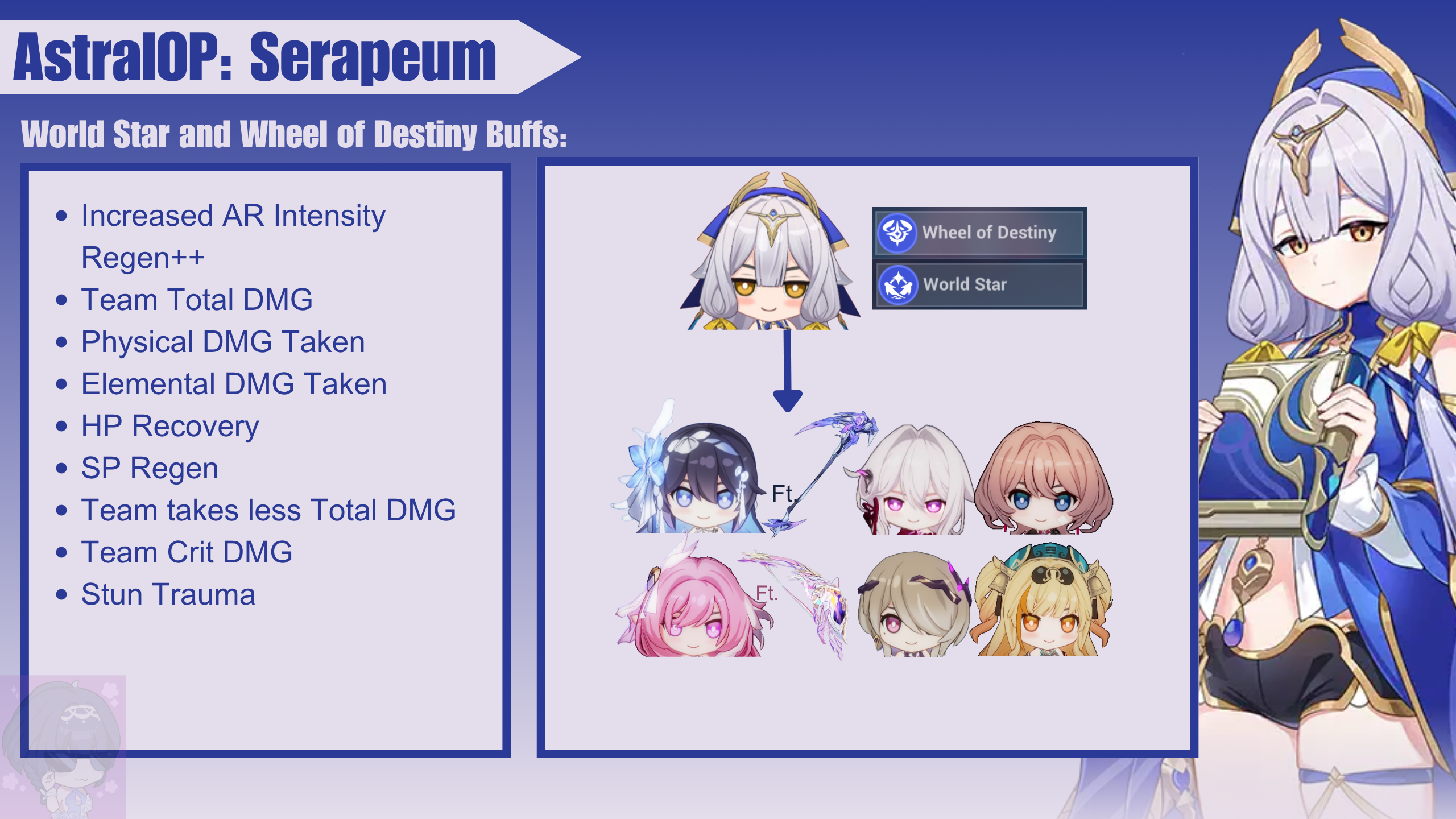 Infograph below summarizes Serapeum’s buffs and the valkyries she supports.