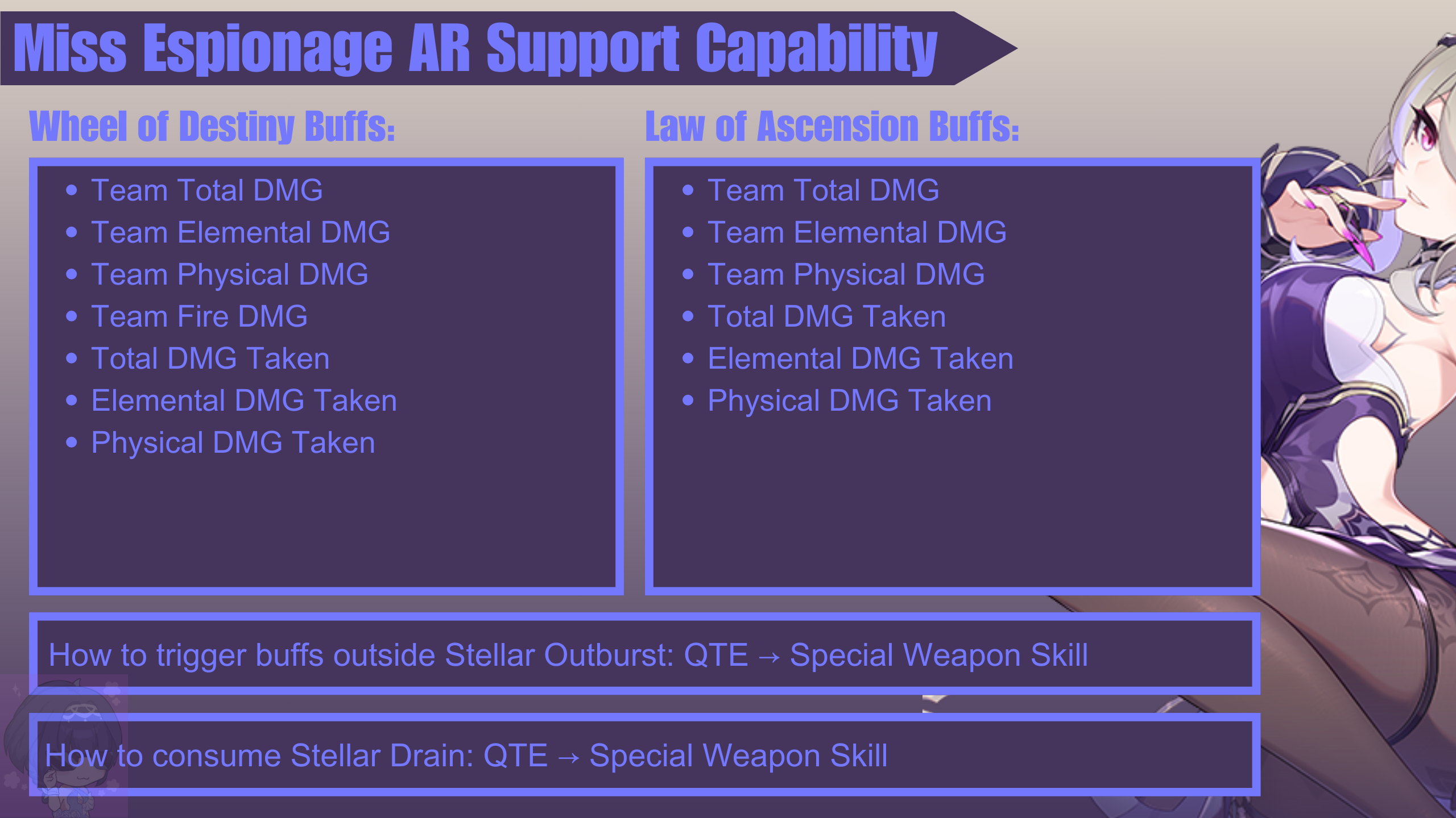Deepspace Anchor: First Light (DA) has quite complex rotation or combo sequences both as DPS and as World Star support, as her combo sequences involve multiple buttons consequently. However, in Wheel of Destiny teams, DA doesn’t need to enter field often to provide buffs.