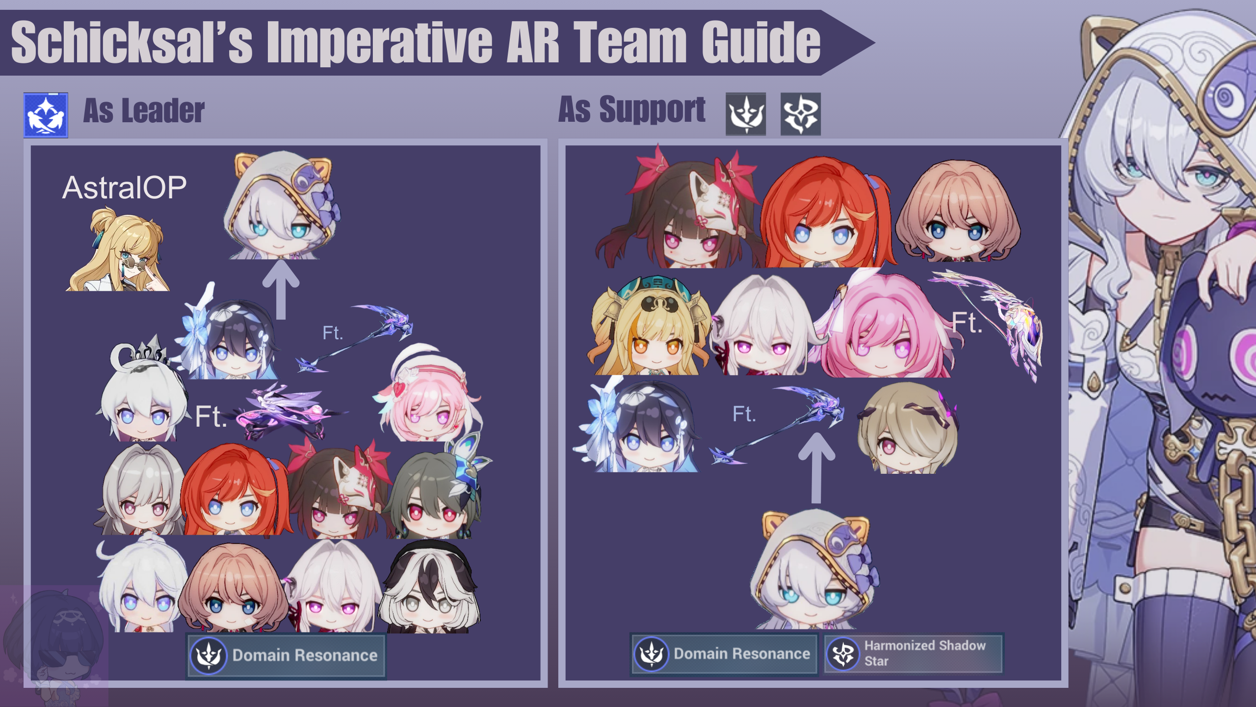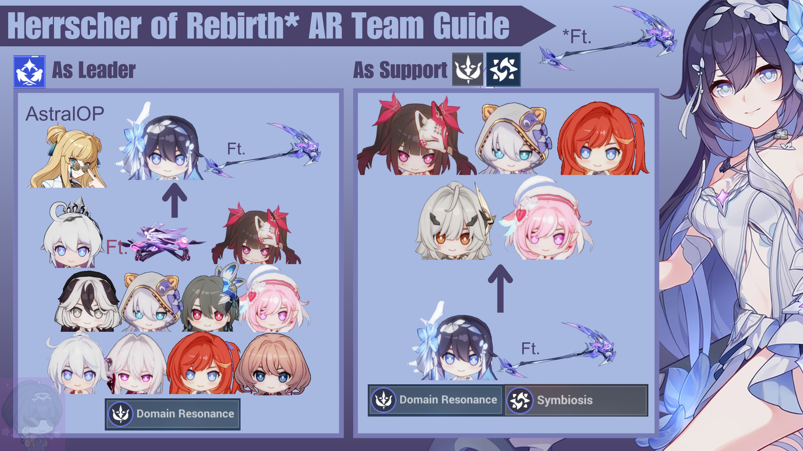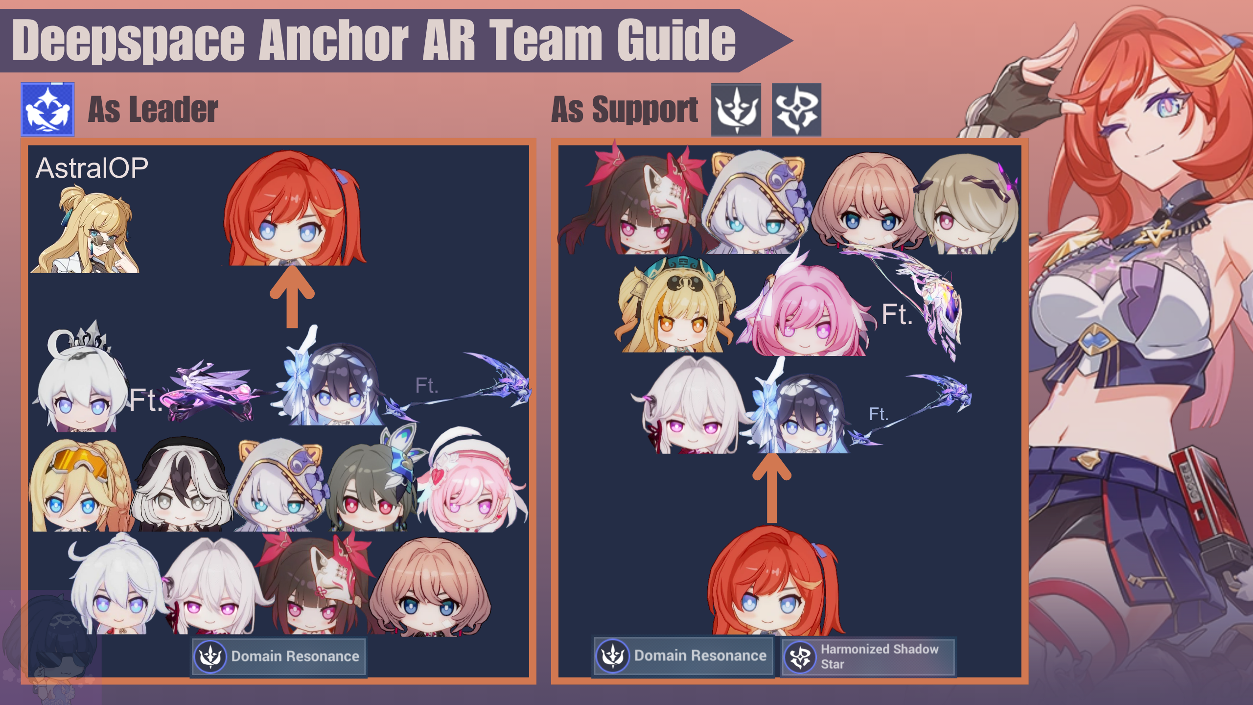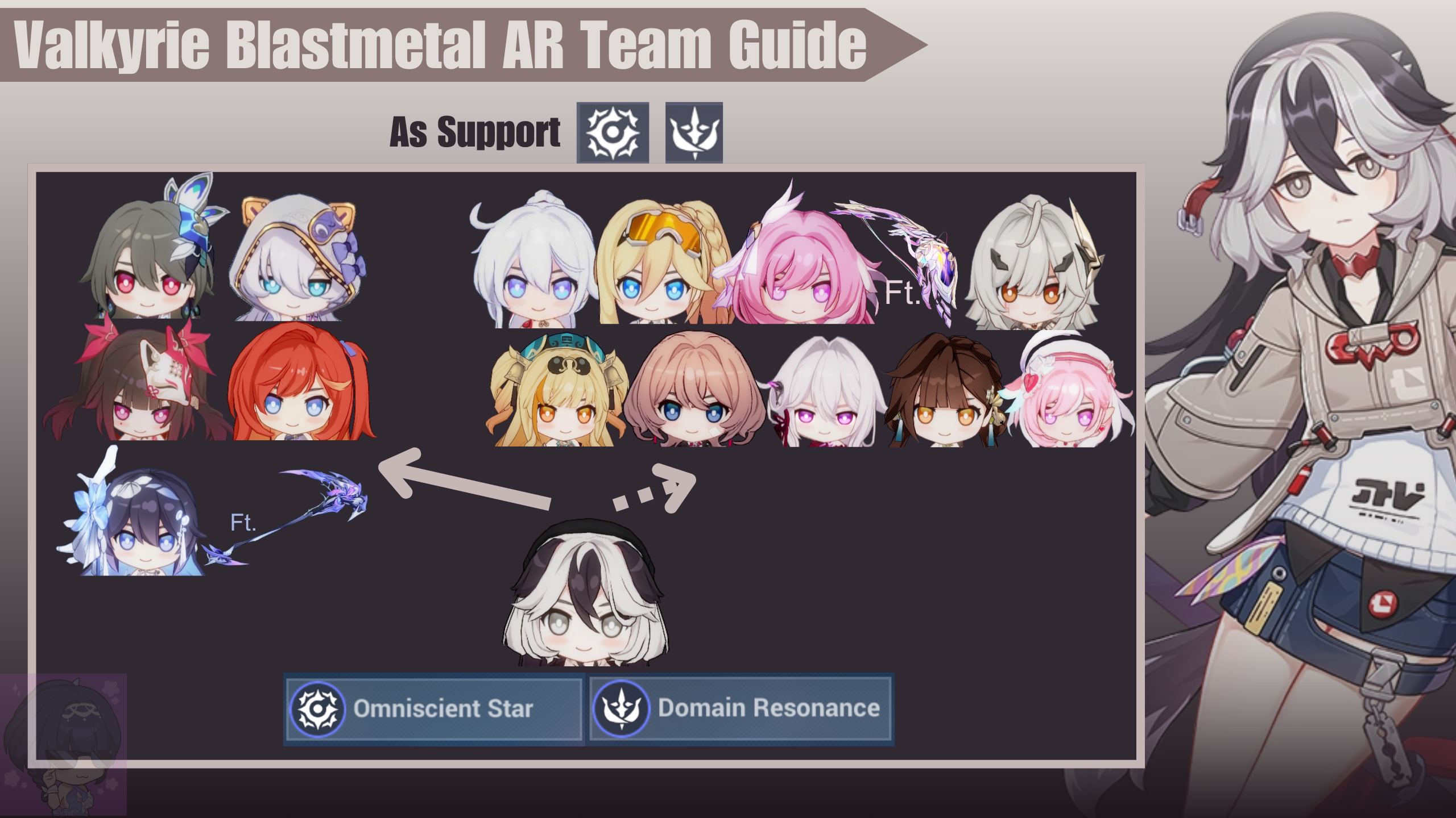 Deepspace Anchor: First Light (DA) is a World Star valkyrie, so she has to be supported by AR valkyries with Domain Resonance trait, otherwise her potentials aren’t fully unlocked. However, using Rite of Oblivion valkyries CAN work until you get Domain Resonance valkyries, as they provide general buffs.