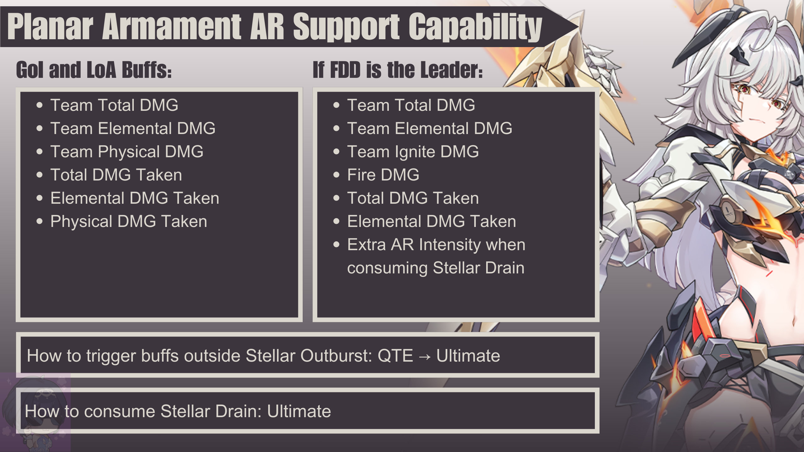 Instant AR Intensity regen by performing certain attacks. Stellar Drain can only be consumed each valkyrie in field once when entering field and after Stellar Outburst is cast.