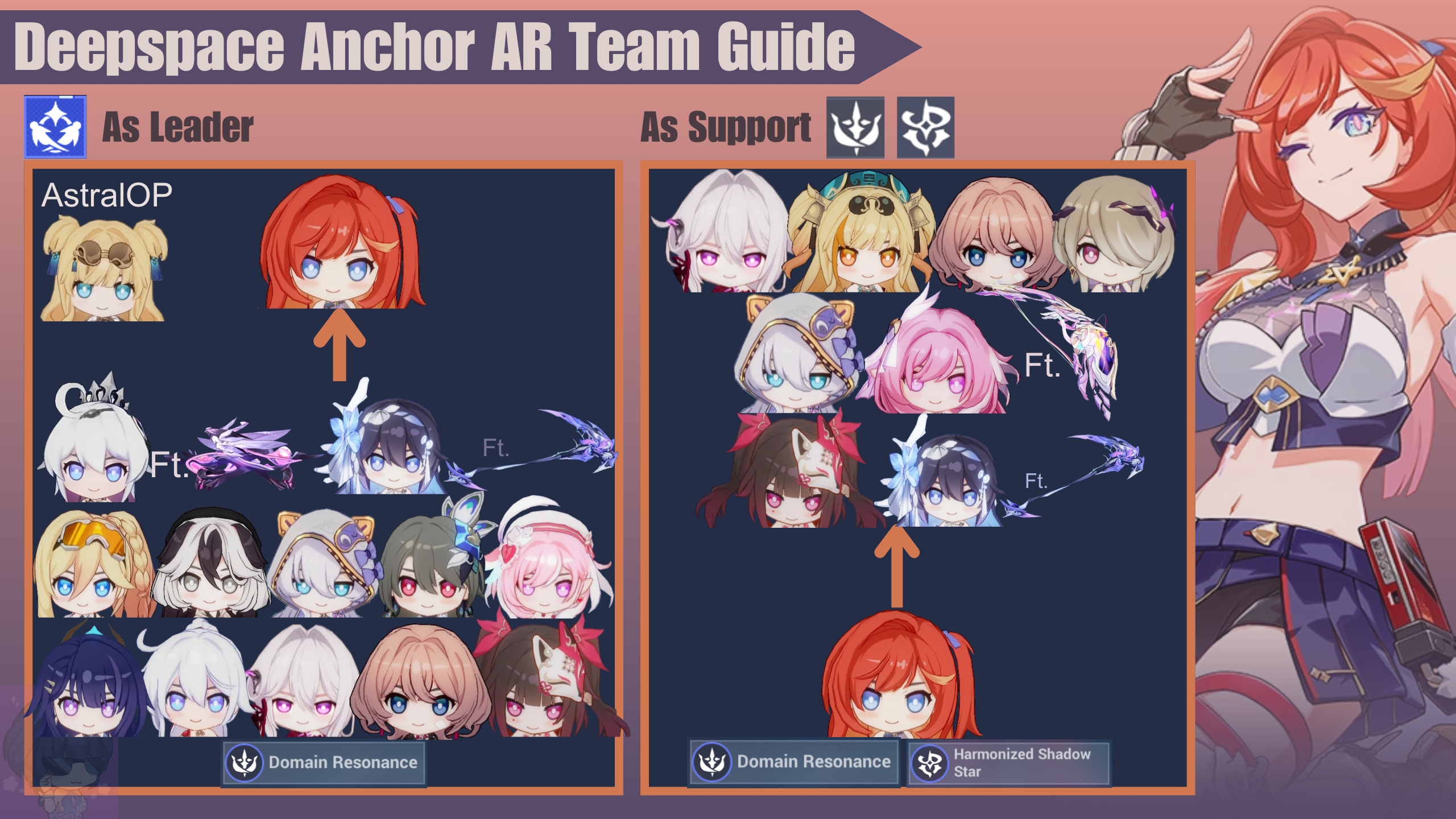 Deepspace Anchor: First Light (DA) is a valkyrie, so she has to be supported by AR valkyries with Domain Resonance trait, otherwise her potentials aren’t fully unlocked. However, using Rite of Oblivion valkyries CAN work until you get Domain Resonance valkyries, as they provide general buffs.