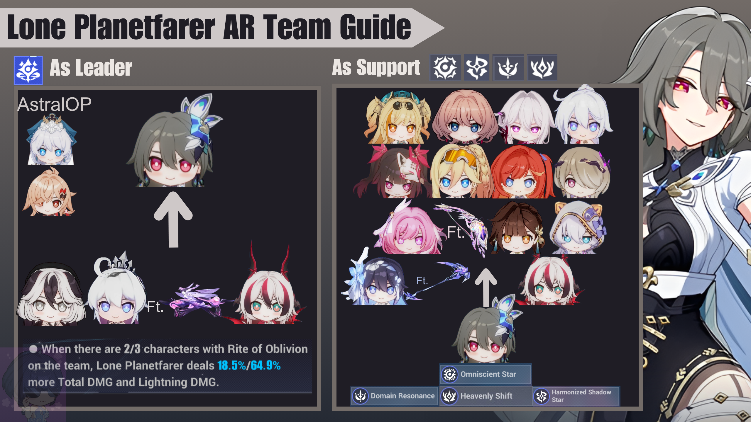 Lone Planetfarer (LP) can provide , making her one of the core supports that are needed more often than not. In addition, her AR Intensity regen is one of the highest of all Astral Ring system valkyries. However, LP is notorious for very slow in consuming .