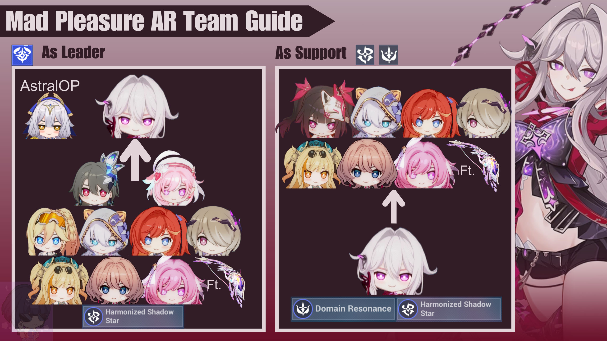 Mad Pleasure: Shadowbringer (MPS) is a valkyrie, so she has to be supported by AR valkyries with Harmonized Shadow Star trait, otherwise her potentials aren’t fully unlocked. However, using Rite of Oblivion valkyries CAN work until you get Harmonized Shadow Star valkyries, as they provide general buffs.